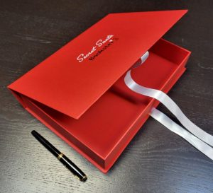 Putem executa la comanda diverse modele de cutii premium cu funda (panglici) pentru diverse cadouri de lux, in diverse culori sau combinatii de culori.
